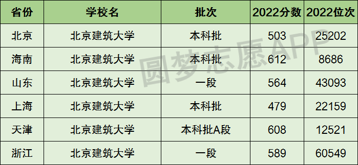 下面圆梦志愿将为大家展示北京建筑大学2022年在全国各省市的最低分数线和位次,大家可以在了解北京建筑大学在全国各省详细招生批次的同时,也顺便看看北京建筑大学的招生录取分数线是多少!