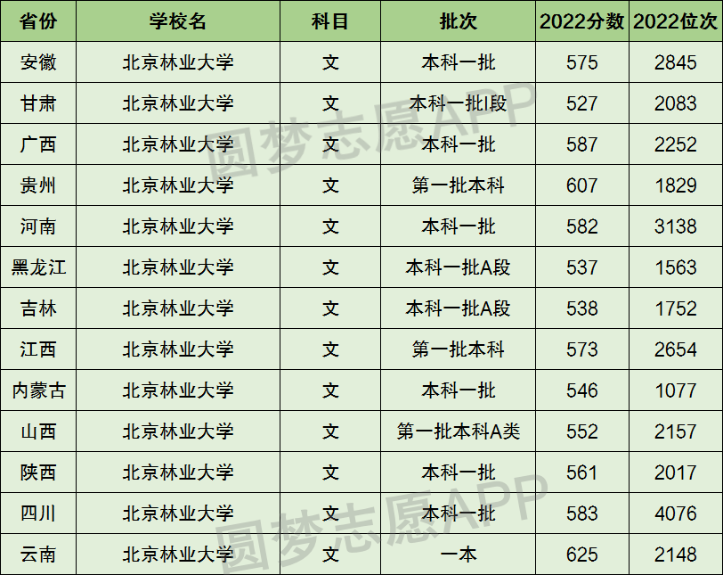1、北京林业大学在全国普通高考省份的【文科】招录数据,包含招生批次等信息: