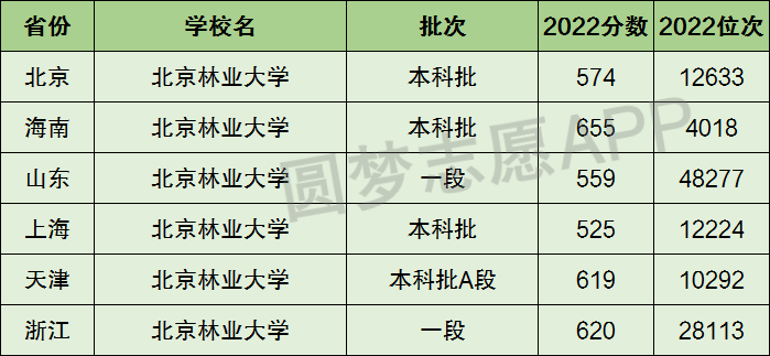 下面圆梦志愿将为大家展示北京林业大学2022年在全国各省市的最低分数线和位次,大家可以在了解北京林业大学在全国各省详细招生批次的同时,也顺便看看北京林业大学的招生录取分数线是多少!
