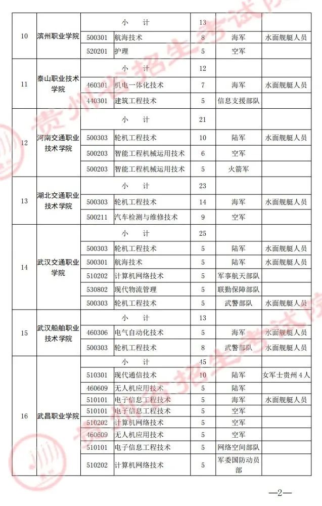 2、阜阳交通职业学院招生专业有机电一体化技术招生9人,招收单位是海军;汽车检测与维修技术招生7人,招收单位是联勤保障部队。