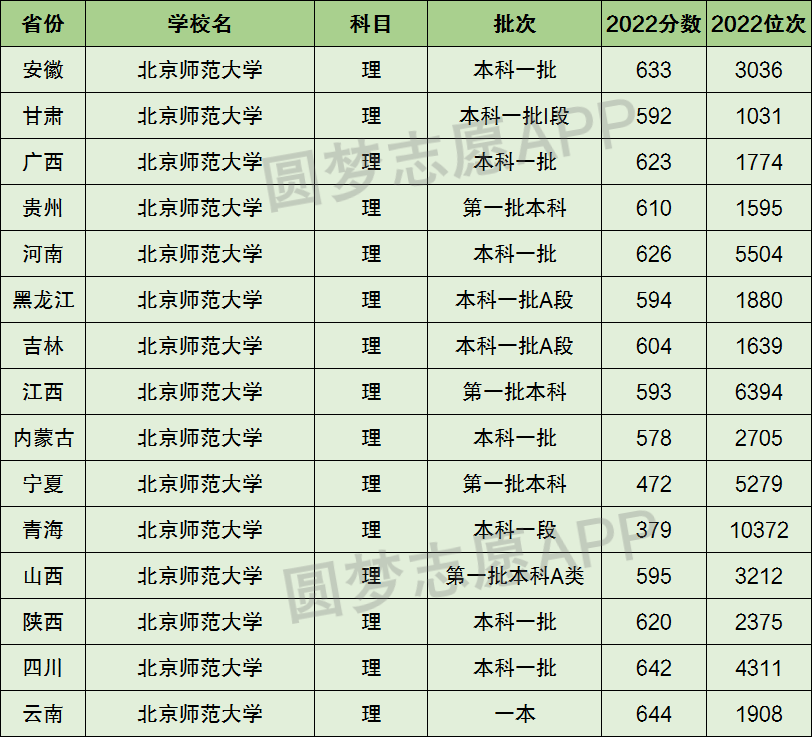 2、北京师范大学在全国普通高考省份的【理科】招录数据,包含招生批次等信息: