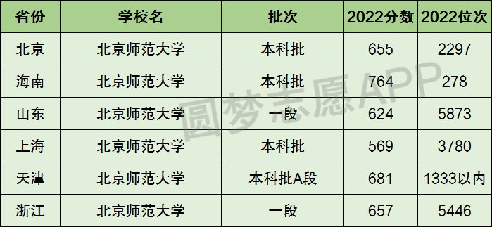 下面圆梦志愿将为大家展示北京师范大学2022年在全国各省市的最低分数线和位次,大家可以在了解北京师范大学在全国各省详细招生批次的同时,也顺便看看北京师范大学的招生录取分数线是多少!