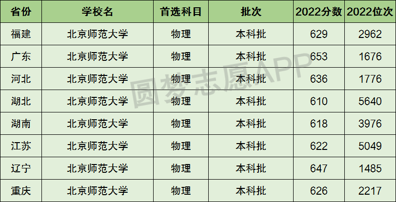 5、北京师范大学在3+1+2新高考省份【首选物理】的招录数据,招生批次为本科批: