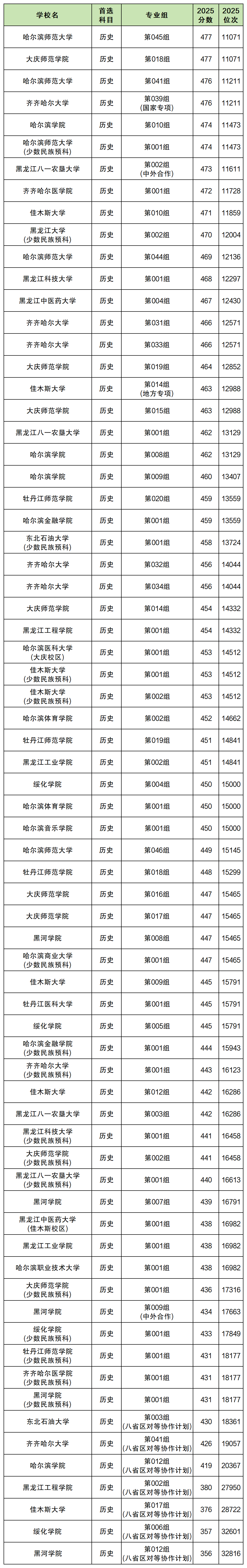 注:新高考省份录取批次不区分一本、二本,本文将本科批特控线以下的非双一流大学视为二本院校,2025年黑龙江特控线:历史类480分、物理类472分。