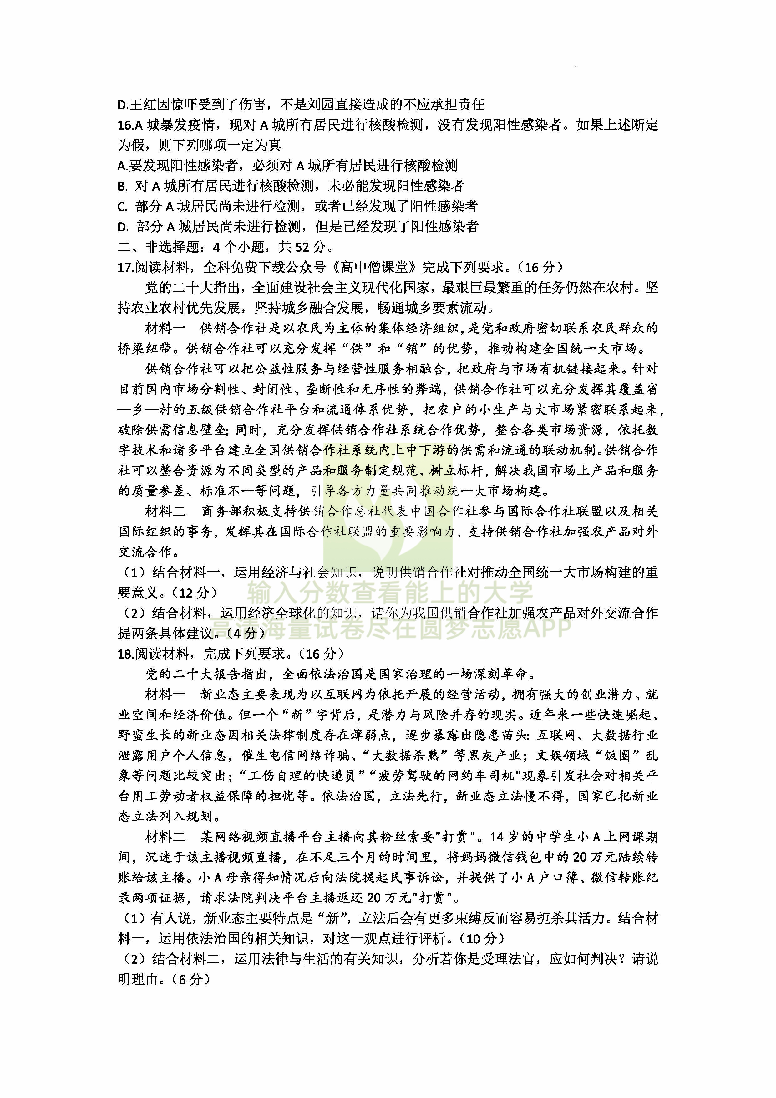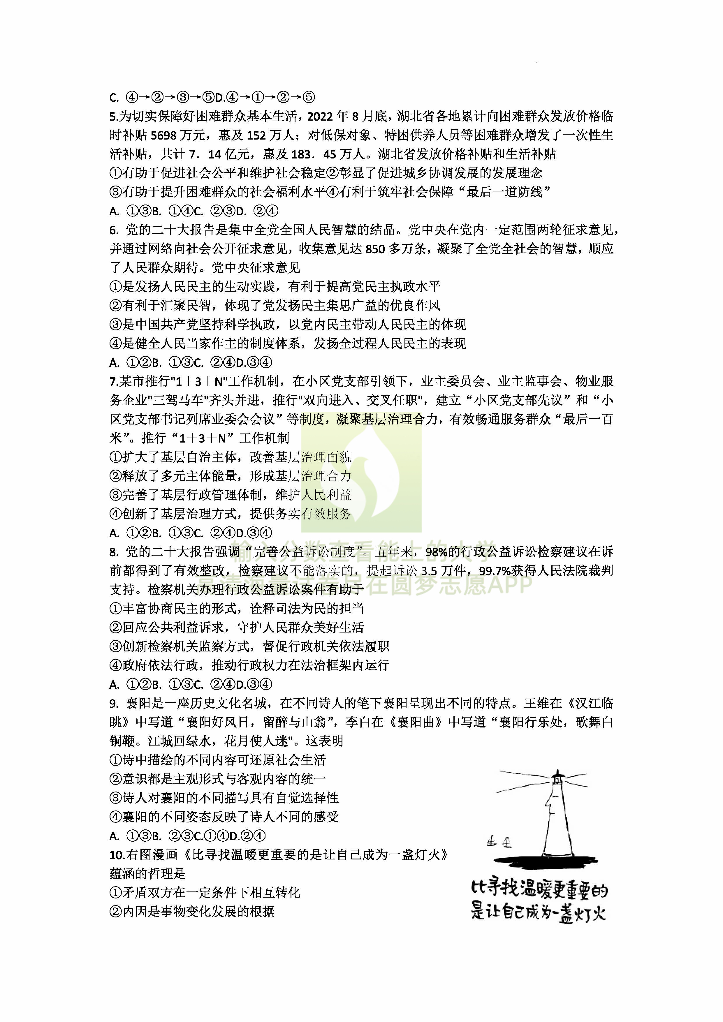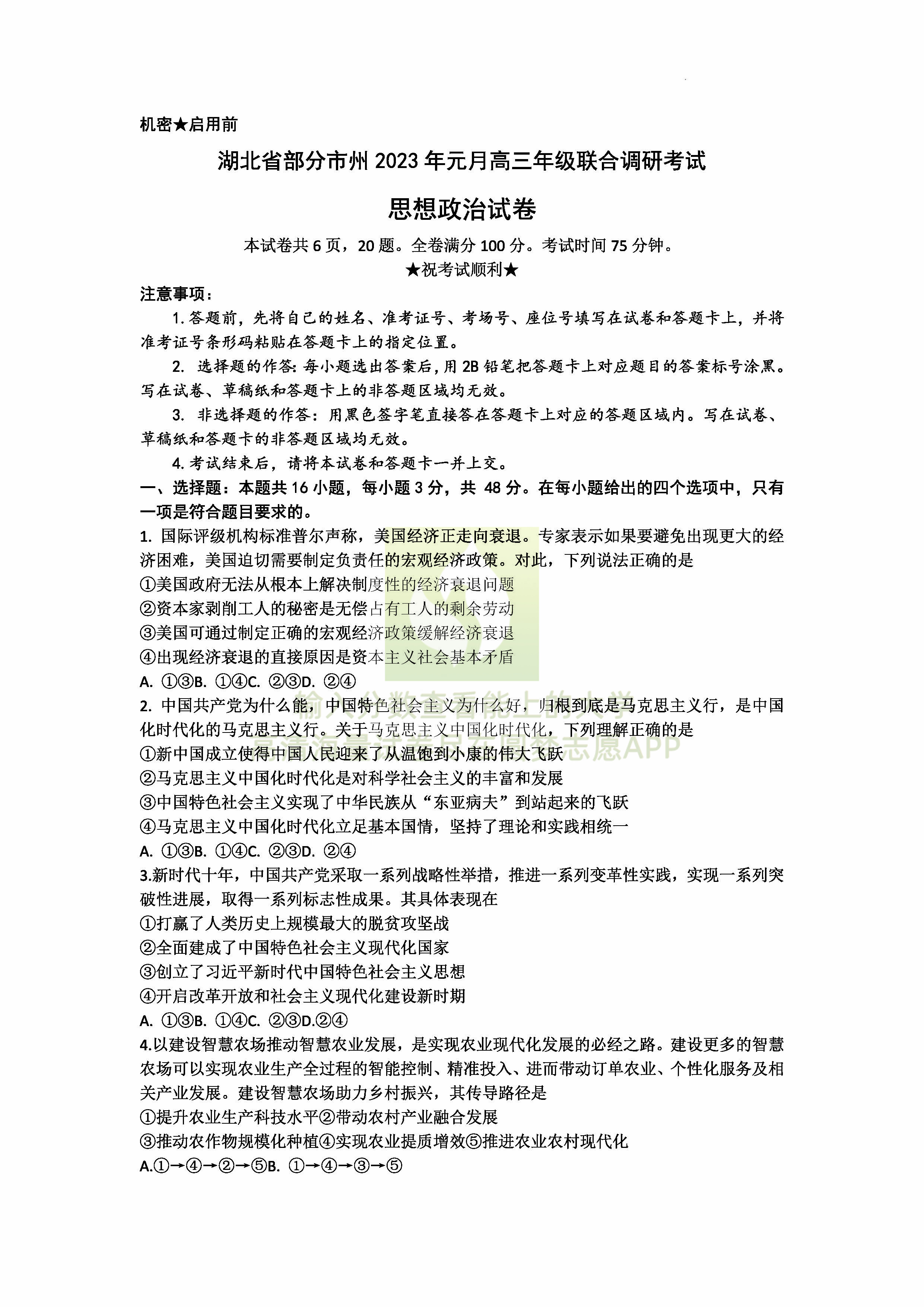 2023湖北部分市州高三年级联合调研考试将于2023年1月9日开考,考试结束后本文将更新2023湖北部分市州高三年级联合调研考试政治答案及试卷,下文为小编搜集整理的2023湖北高三元月调考政治试题及参考答案,供大家参考。