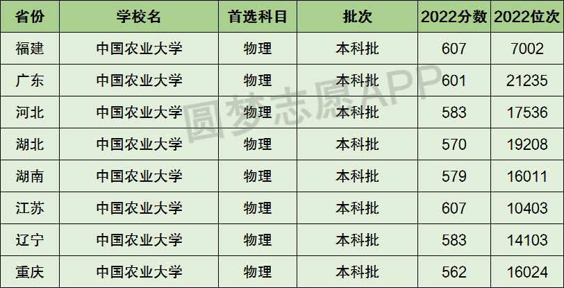 5、中国农业大学在3+1+2新高考省份【首选物理】的招录数据,招生批次为本科批:
