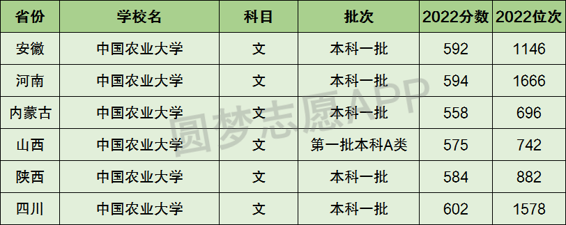 1、中国农业大学在全国普通高考省份的【文科】招录数据,包含招生批次等信息: