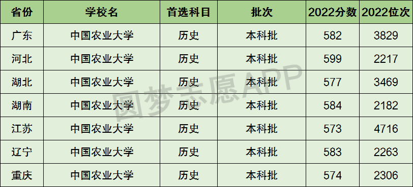 4、中国农业大学在3+1+2新高考省份【首选历史】的招录数据,招生批次为本科批: