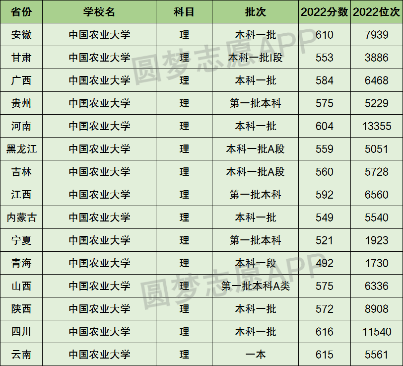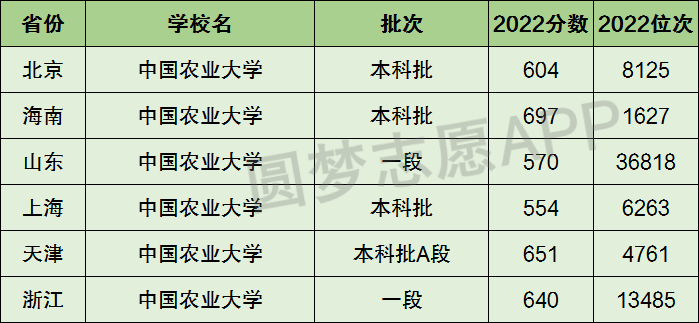 下面圆梦志愿将为大家展示中国农业大学2022年在全国各省市的最低分数线和位次,大家可以在了解中国农业大学在全国各省详细招生批次的同时,也顺便看看中国农业大学的招生录取分数线是多少!