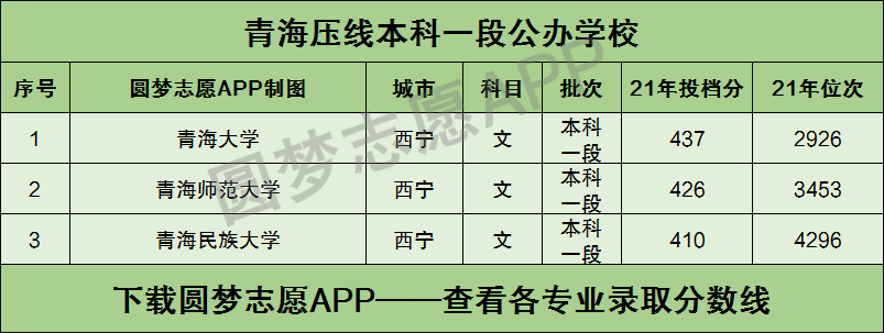 根据青海省教育考试院公布的招录数据,圆梦志愿为大家整理了2021年高考在青海省的本科一段公立大学的名单及其具体投档分、投档位次,供青海省2022年的高三同学查阅。