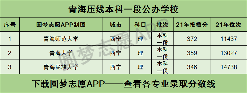 青海好一点的本科一段大学有哪些?青海哪些本科一段院校最容易考上?或许你还不知道这些问题的答案,那么本文圆梦志愿将为你带来“青海压线本科一段公办学校名单及其最低录取分数线、位次”,助你考上公立好大学。