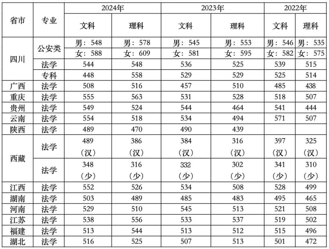 | 历史 | 四川警察学院 | 101 | 法学 | 559 |