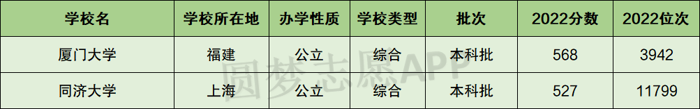综上同济大学和厦门大学,在不同地区分数线高低略有差异,整体上看同济大学和厦门大学在分数线上基本持平。
