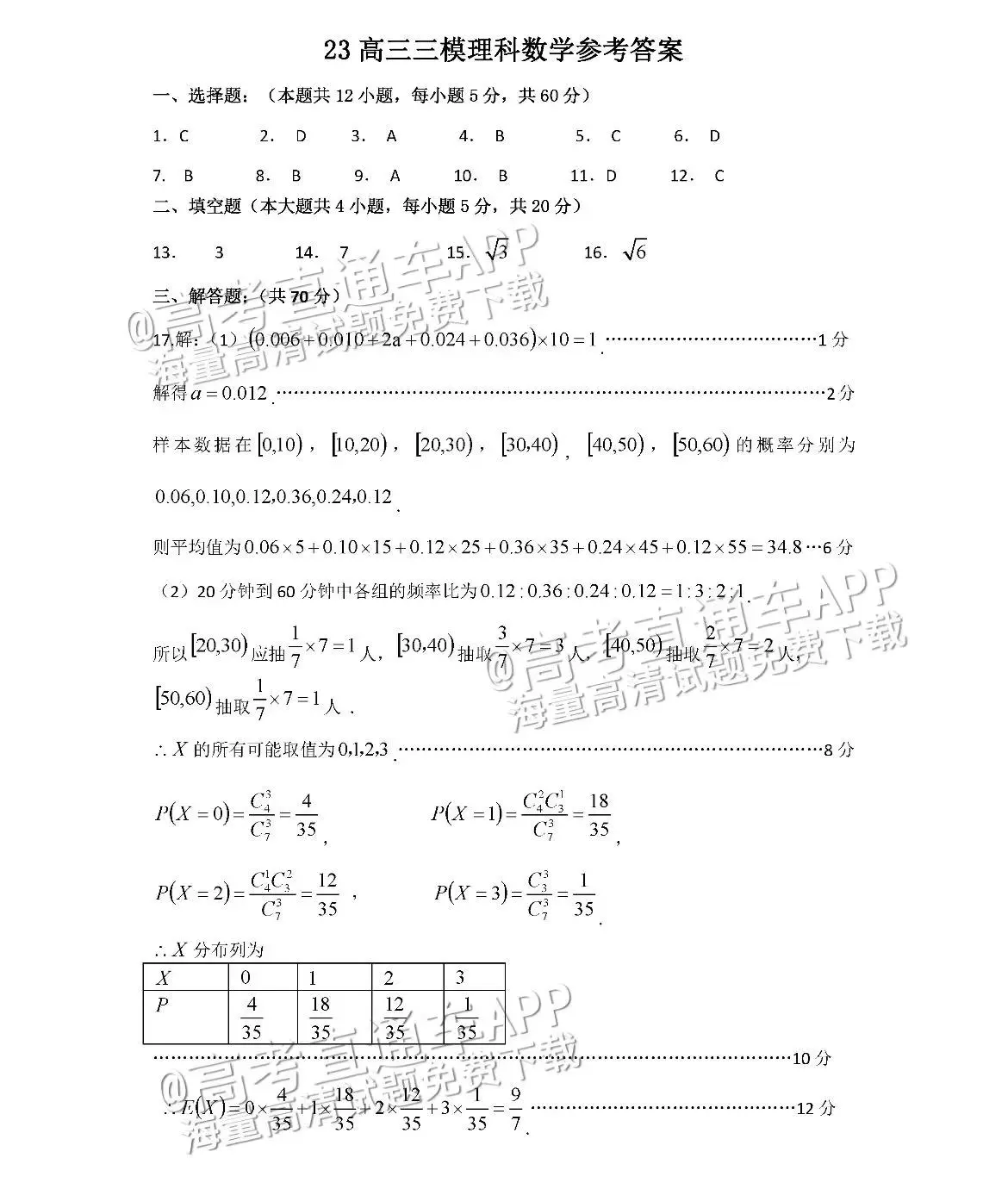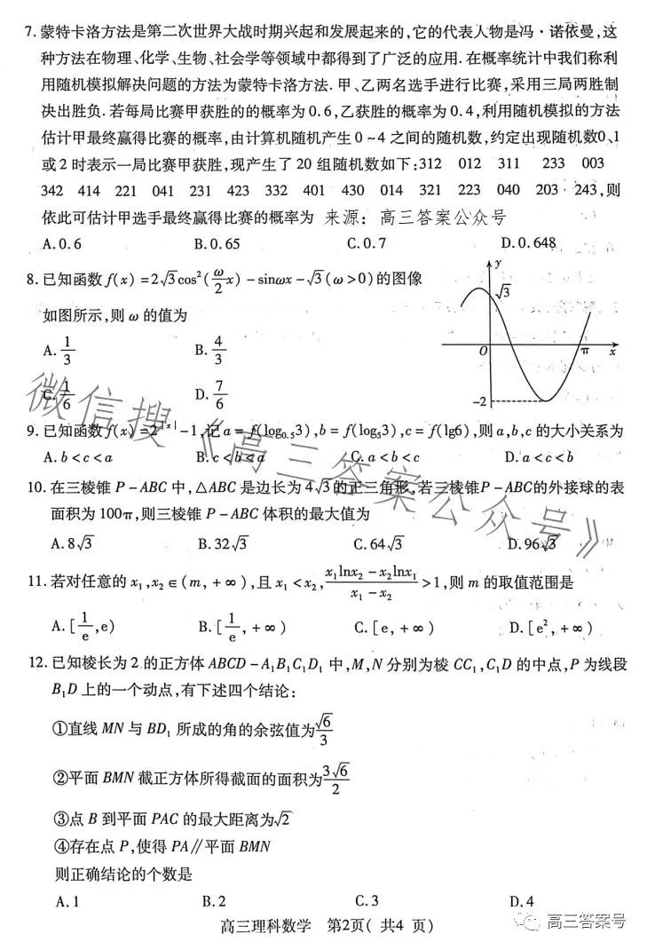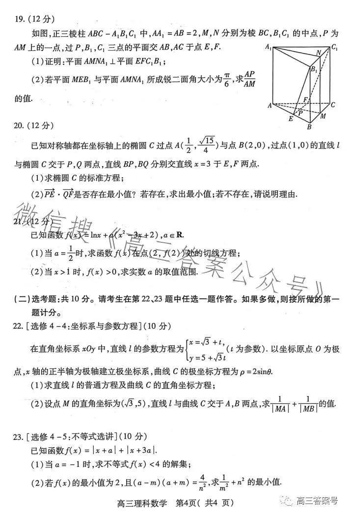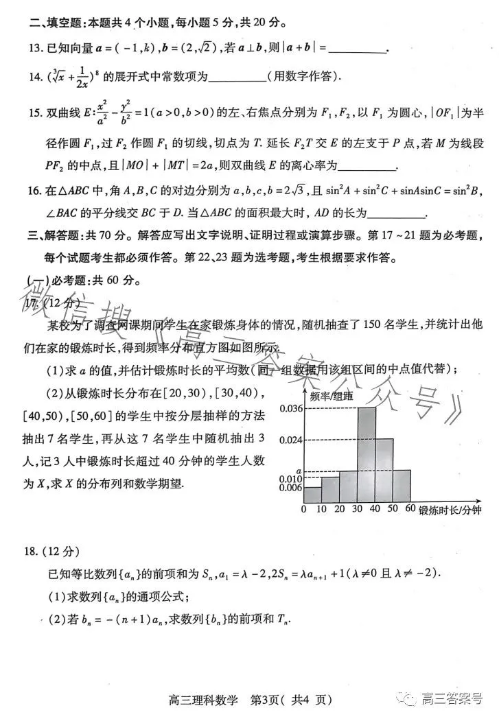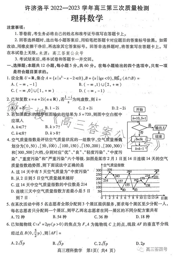 三、2023洛阳高三三测理科数学试卷及答案解析