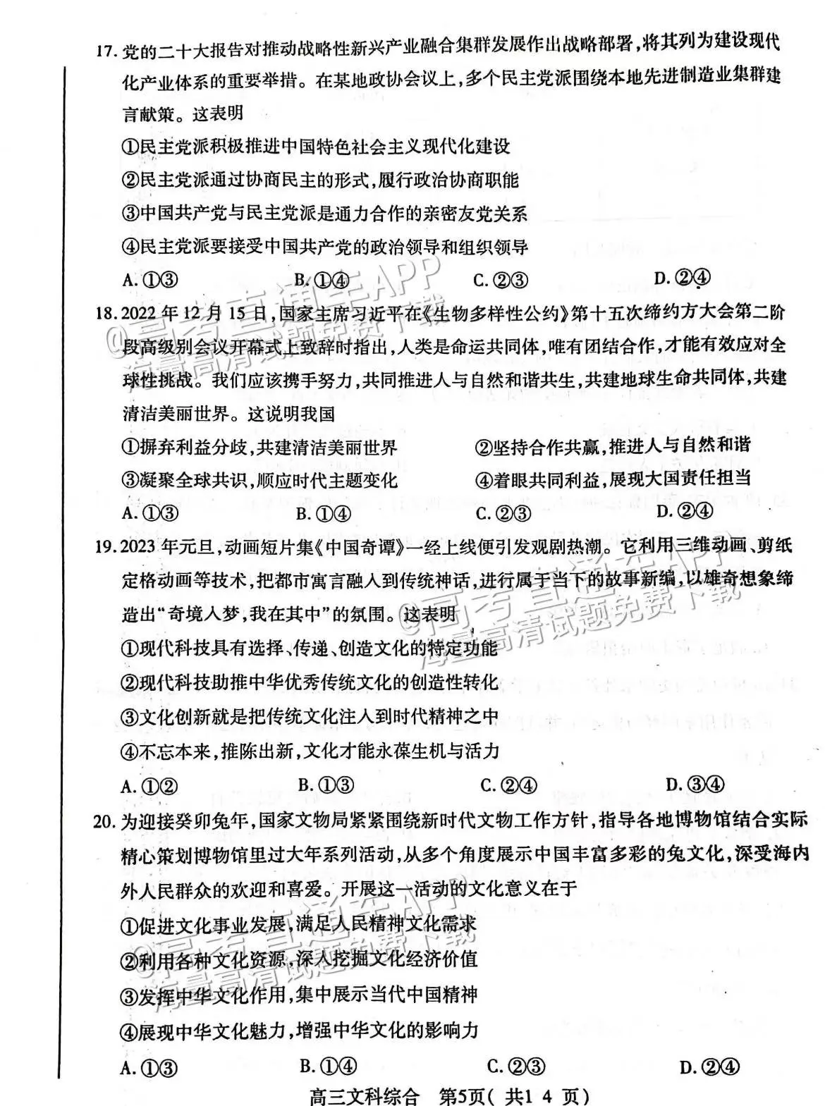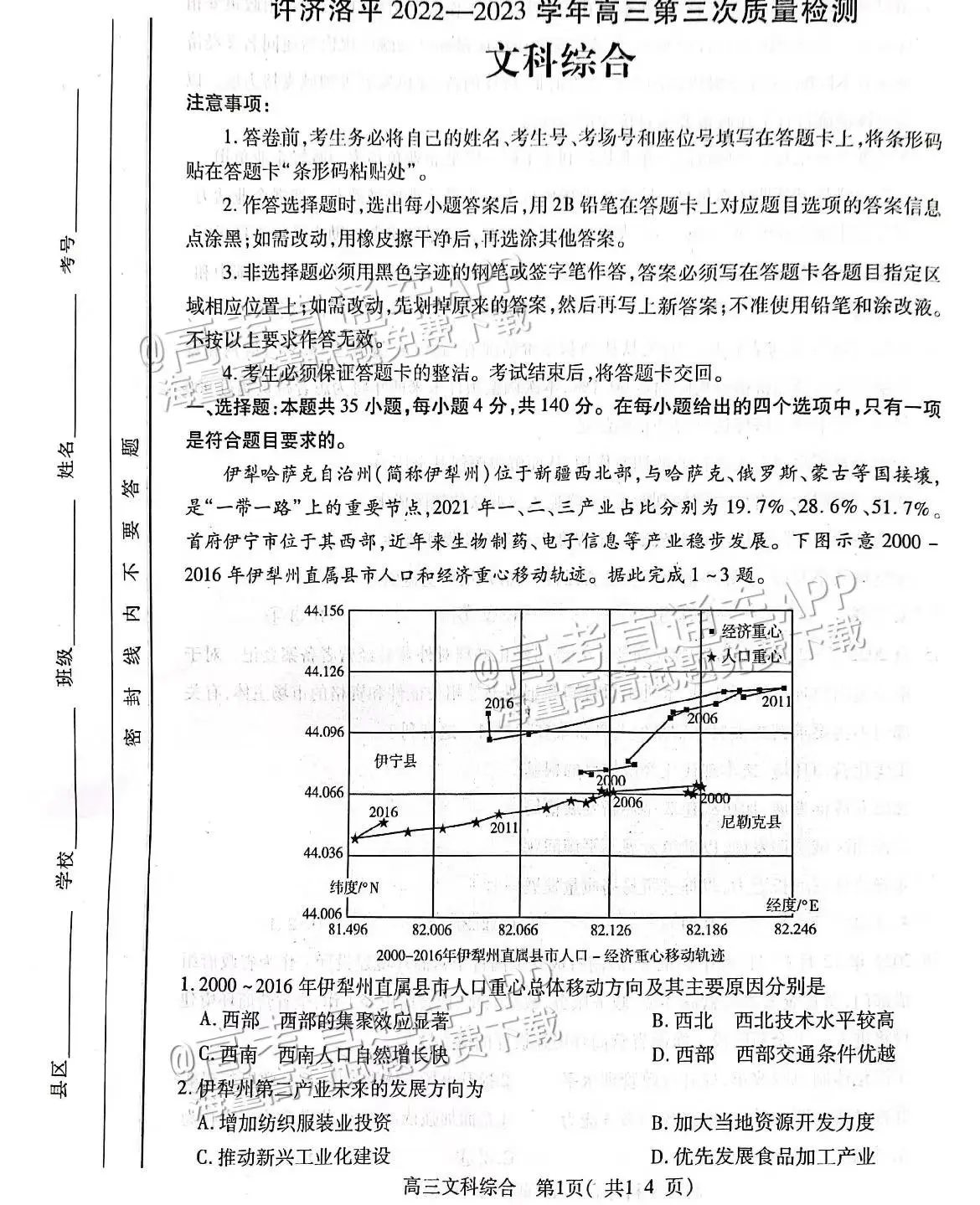 五、2023洛阳高三三测文综试卷及答案解析