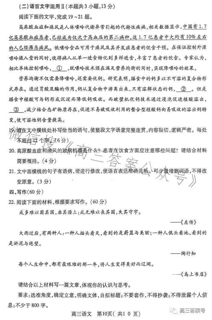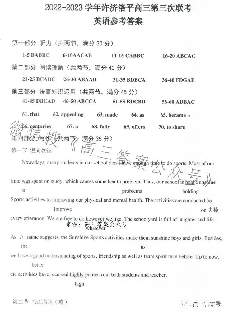 以下为2023洛阳高三三测考试各科试卷及答案解析汇总: