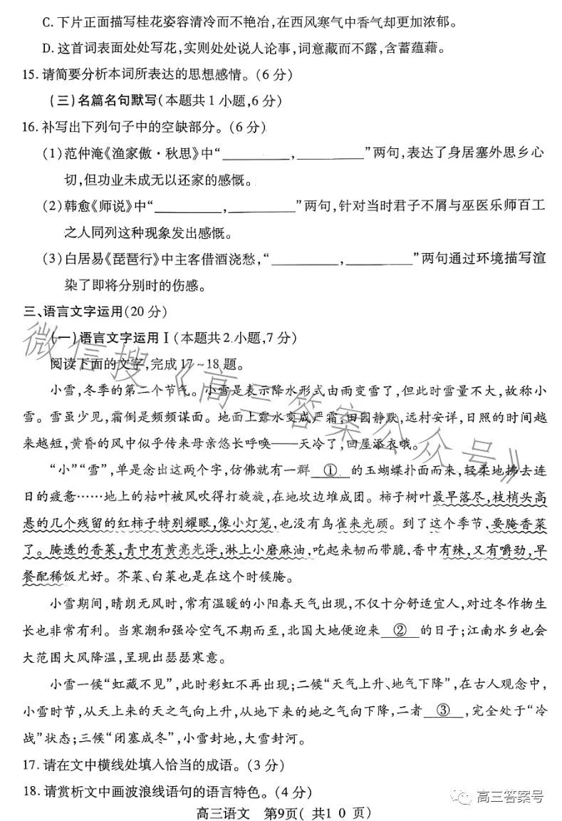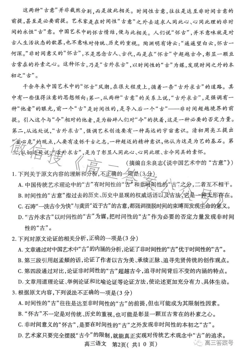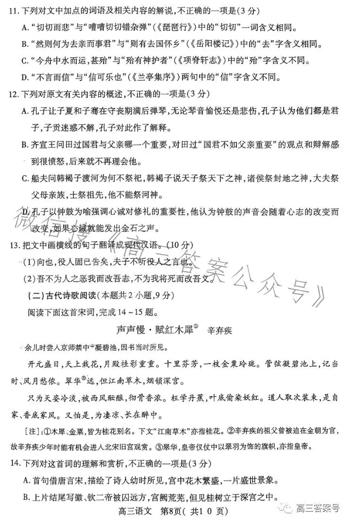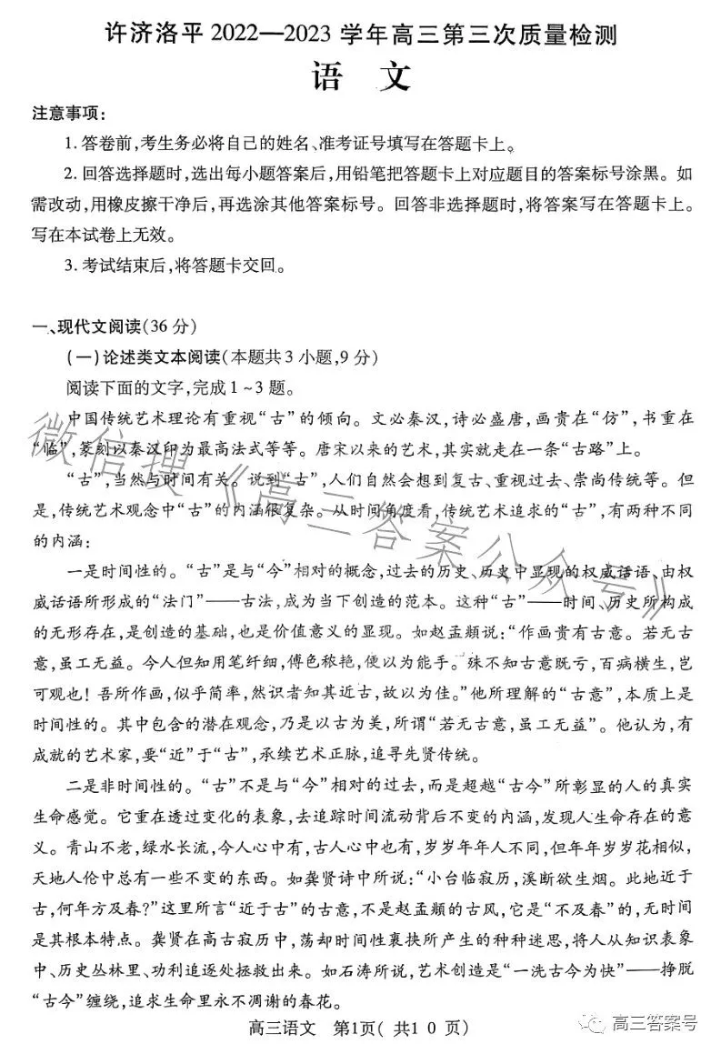 一、2023洛阳高三三测语文试卷及答案解析