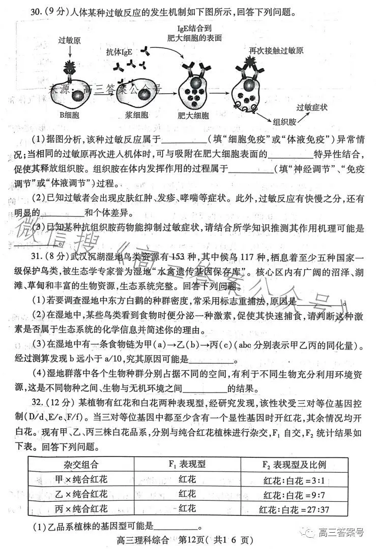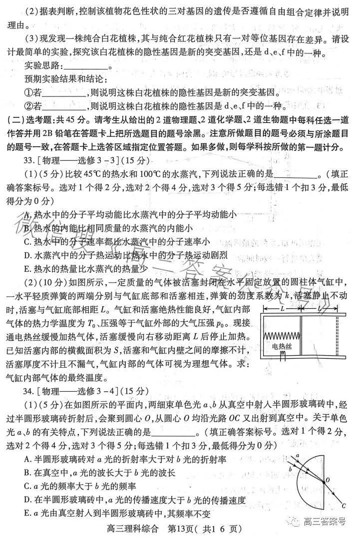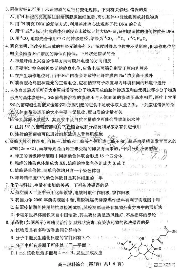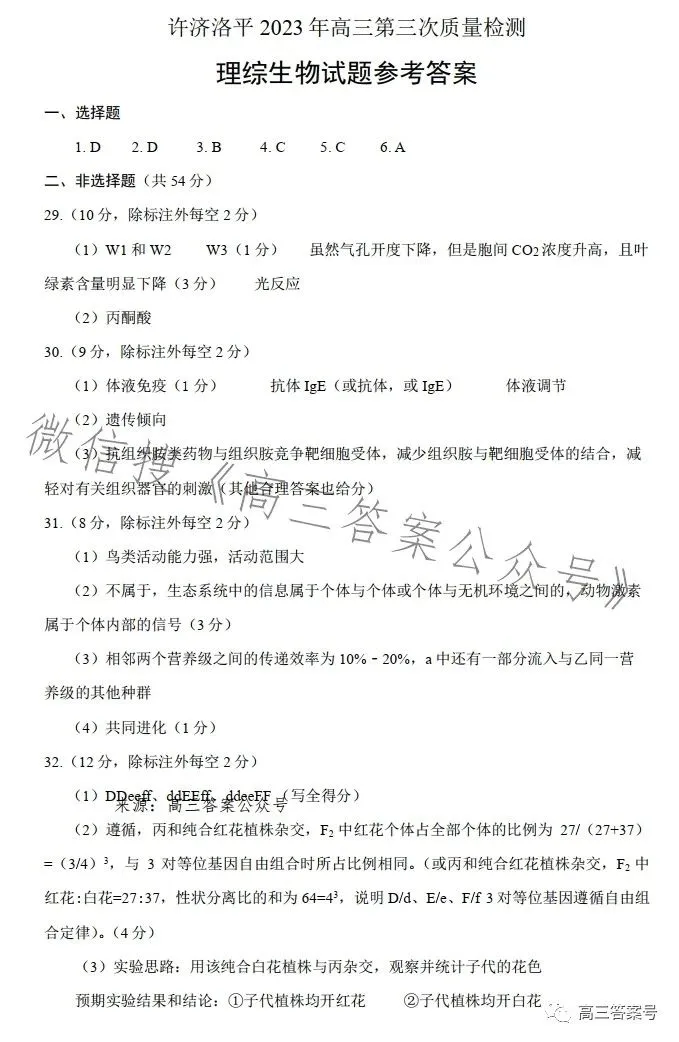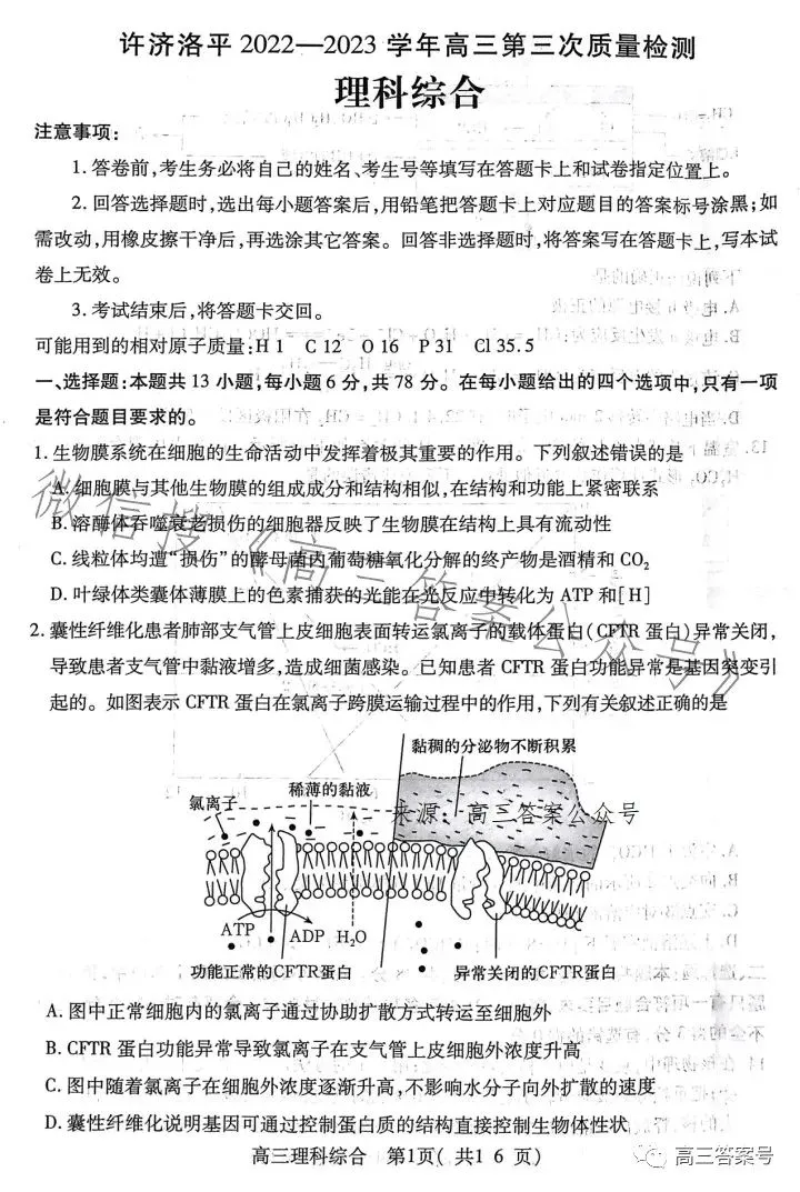 六、2023洛阳高三三测理综试卷及答案解析
