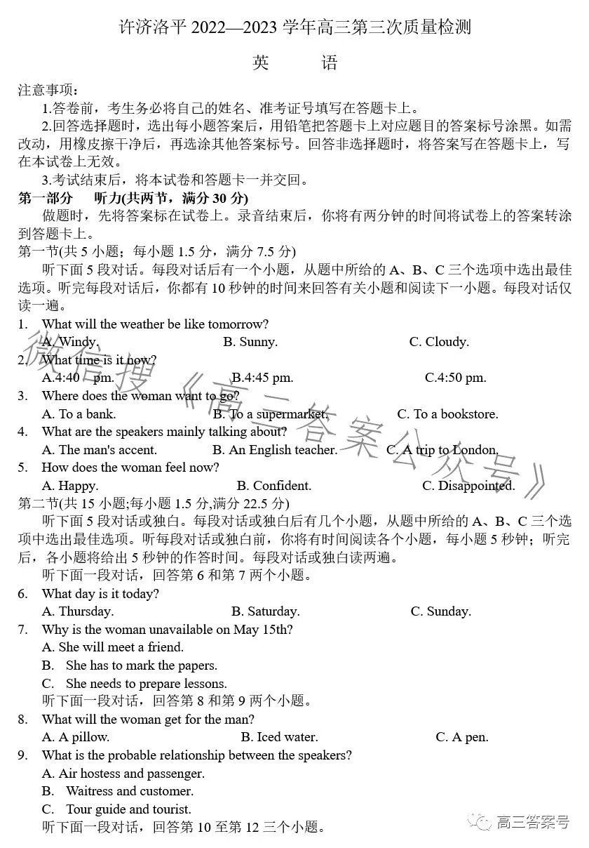 四、2023洛阳高三三测英语试卷及答案解析
