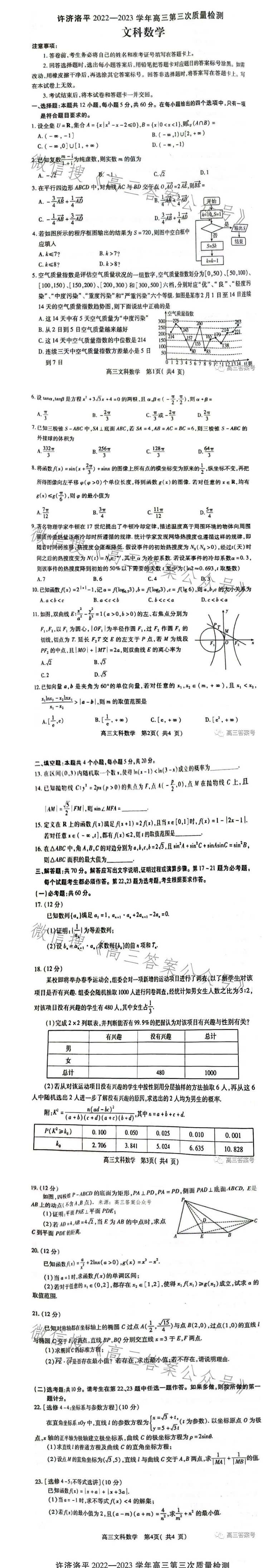 二、2023洛阳高三三测文科数学试卷及答案解析
