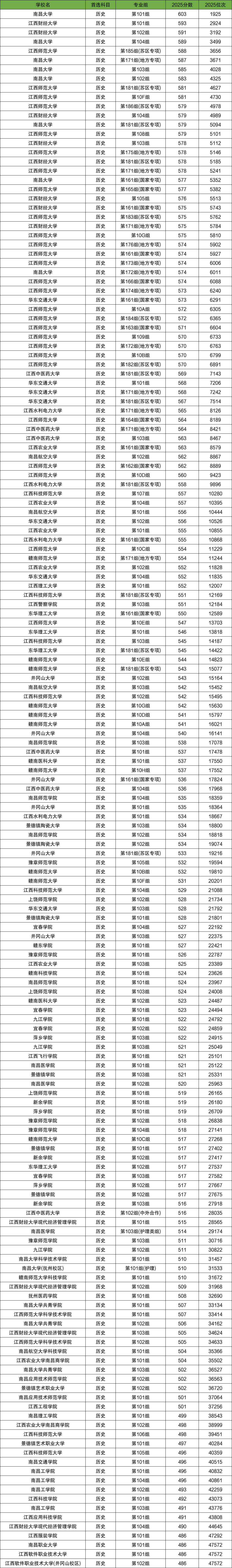 二、江西各高校历史类录取分数线
