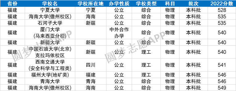 根据2022年全国211大学在福建省的分数来看,福建物理类最低分的211大学是宁夏大学,最低528分可以考上,需要超过本科线100分。