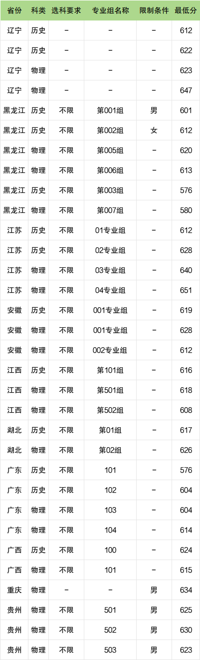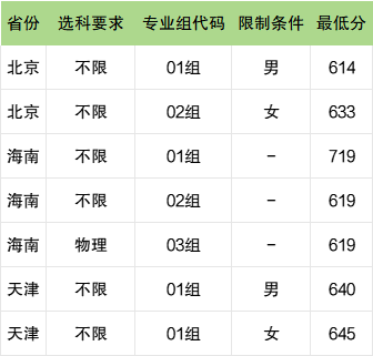 | 省份 | 科类 | 限制条件 | 最低分 |