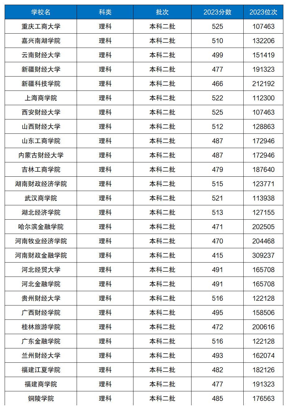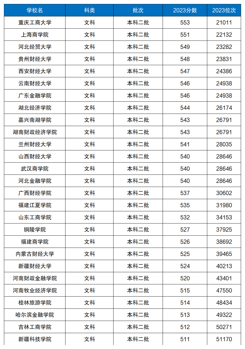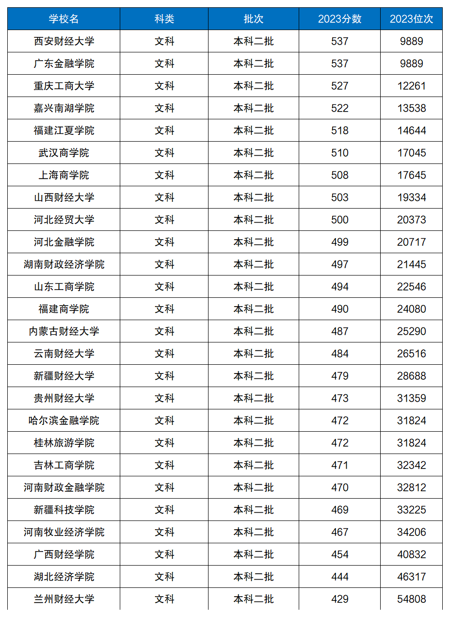 因为不同院校在各省份的招录分数、招录批次不同,且碍于篇幅有限,因此这里小编仅列举2023年在河南、广西进行二本招生的公办财经类大学名单及分数线情况,以供大家参考。