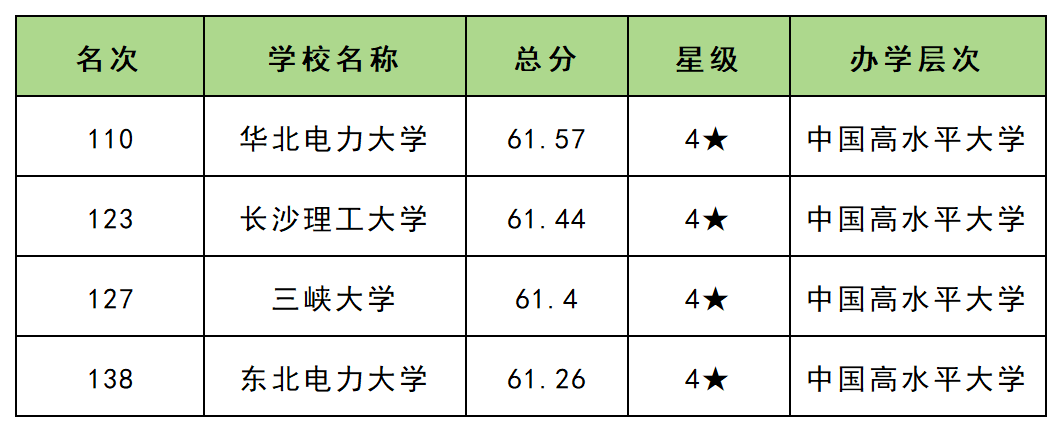 上文整理的是软科排名,如果按照校友会划分的办学层次来看的话,电力大学可以分为四个档次。