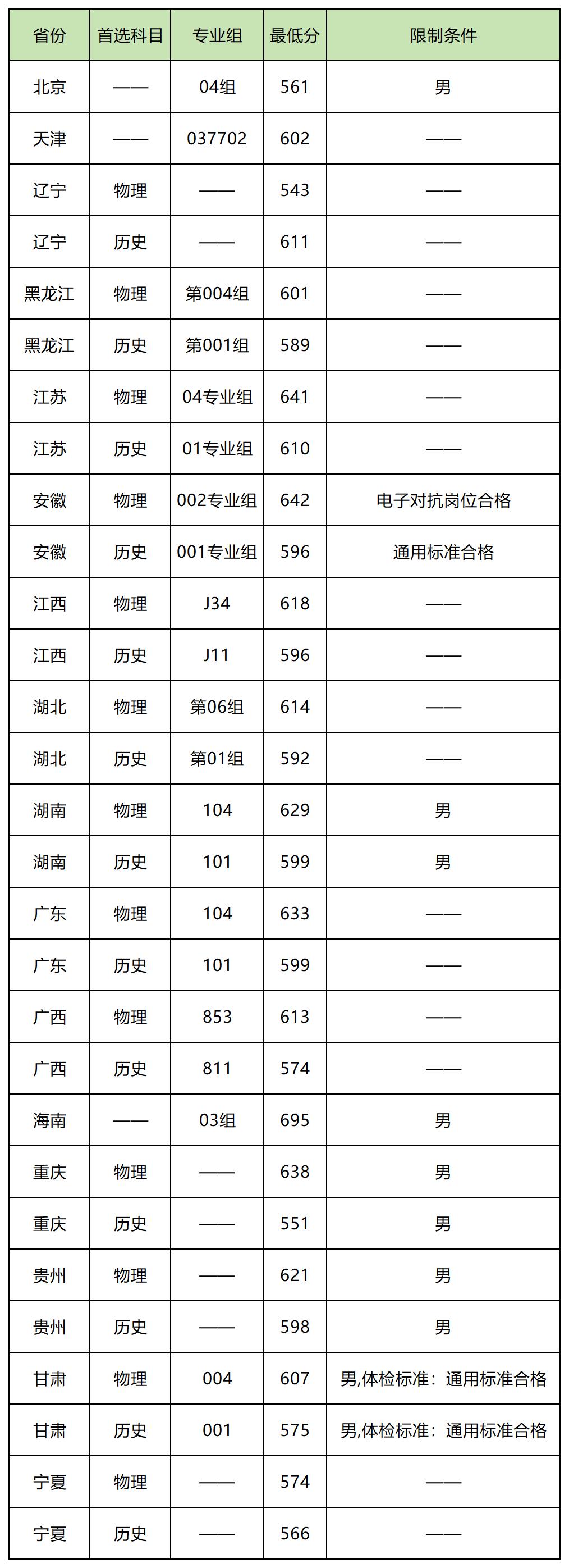 2025年空军军医大学在江苏招生最低分为602分(物理类);