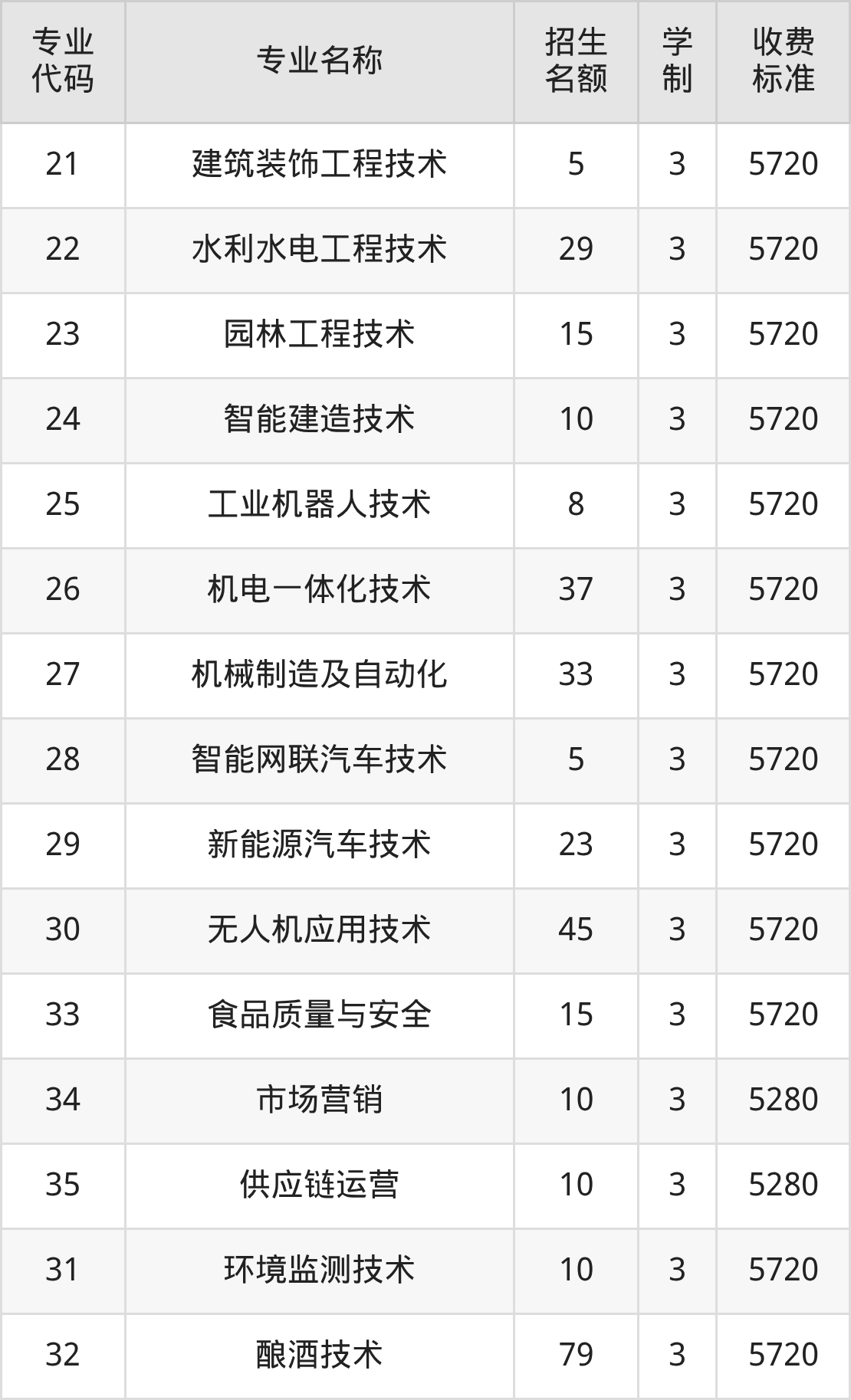 | 23 | 园林工程技术 | 15 | 3 | 5720 |