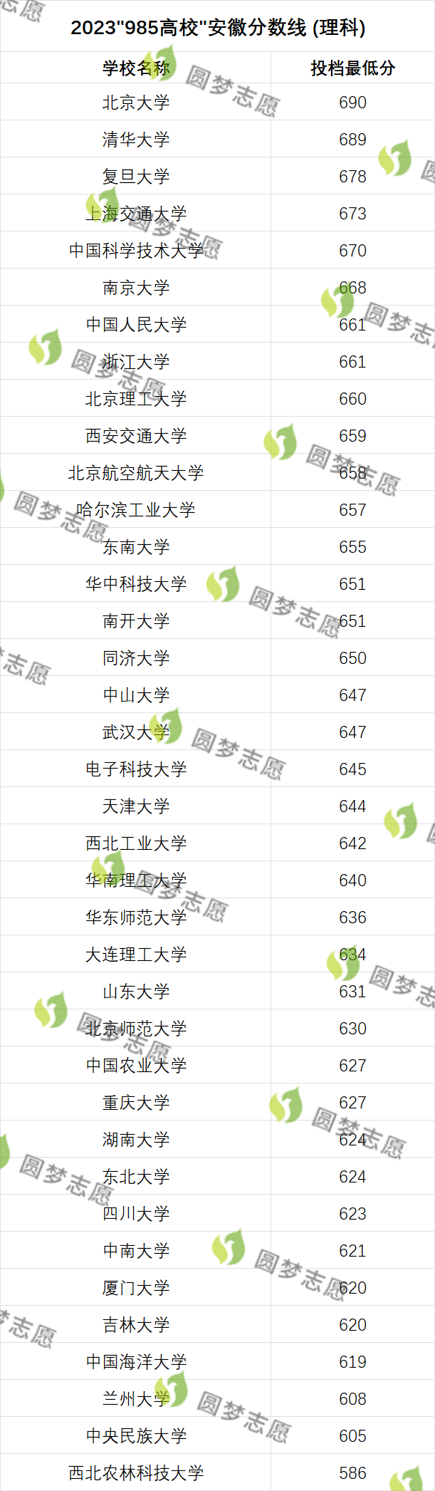 以上就是为大家整理的985大学在安徽录取分数线,希望大家了解2023年安徽高考多少分才能上985大学。