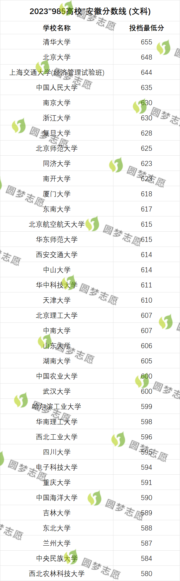 2023全国985大学在安徽录取分数线及位次排名公布!本期整理了安徽地区985高校投档线一览表,具体985高校在苏录取分数汇总情况如下,来看看2023年安徽高考物理、历史类多少分才能上985大学。附最低录取成绩一览表供2024年文理科参考!