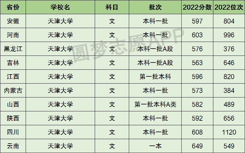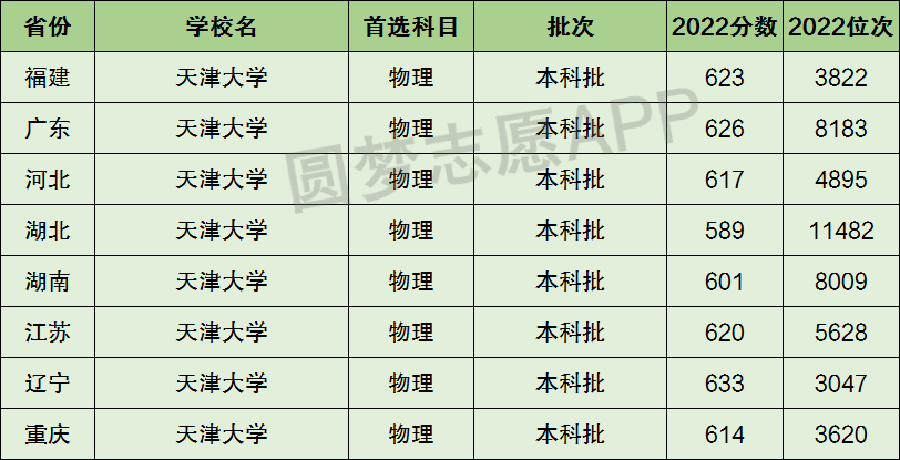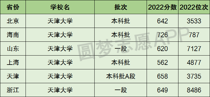 下面圆梦志愿将为大家展示天津大学2022年在全国各省市的最低分数线和位次,大家可以在了解天津大学在全国各省详细招生批次的同时,也顺便看看天津大学的招生录取分数线是多少!