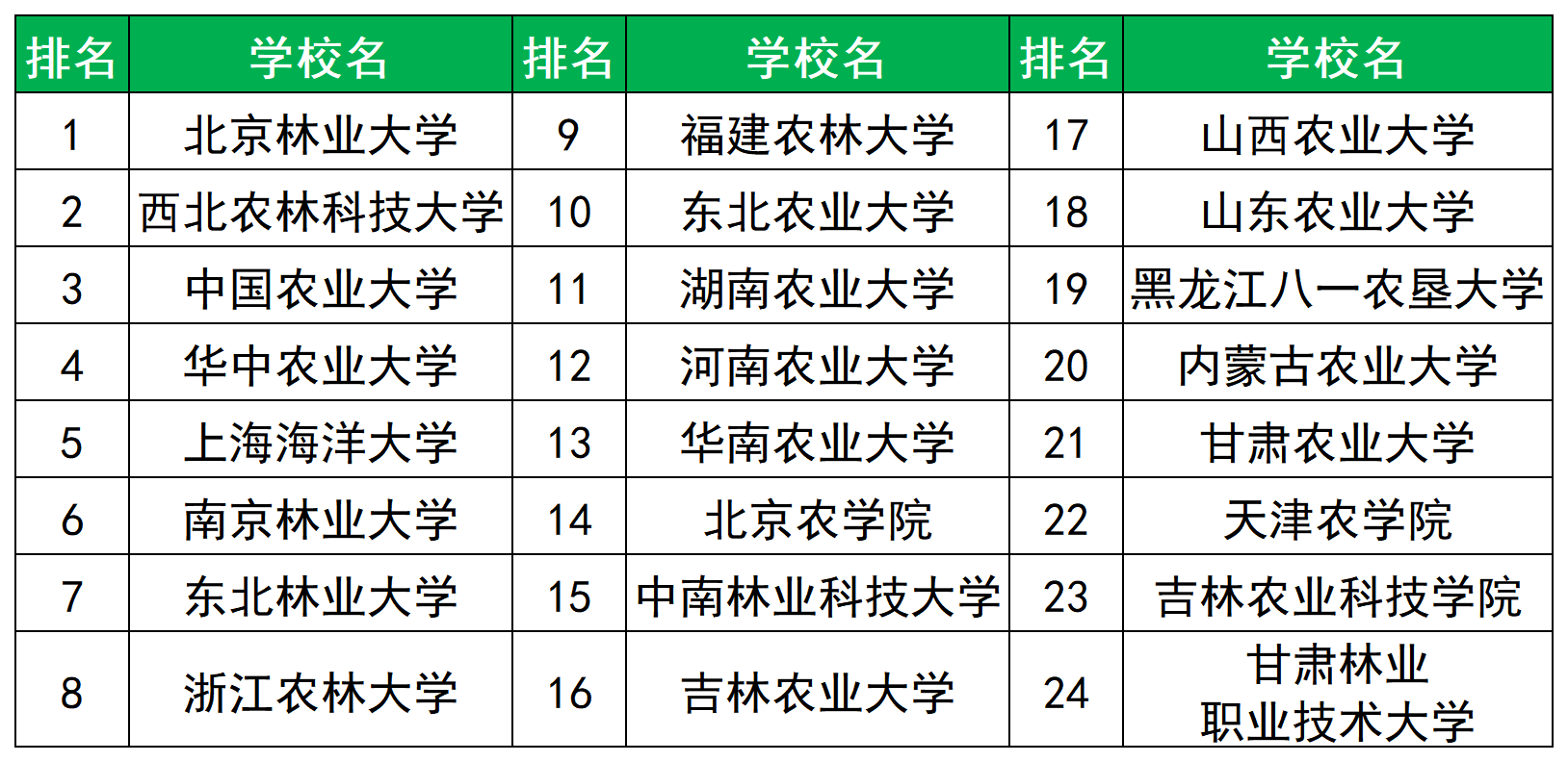 最难考的前五名院校分别为北京林业大学、西北农林科技大学、中国农业大学、华中农业大学、上海海洋大学。