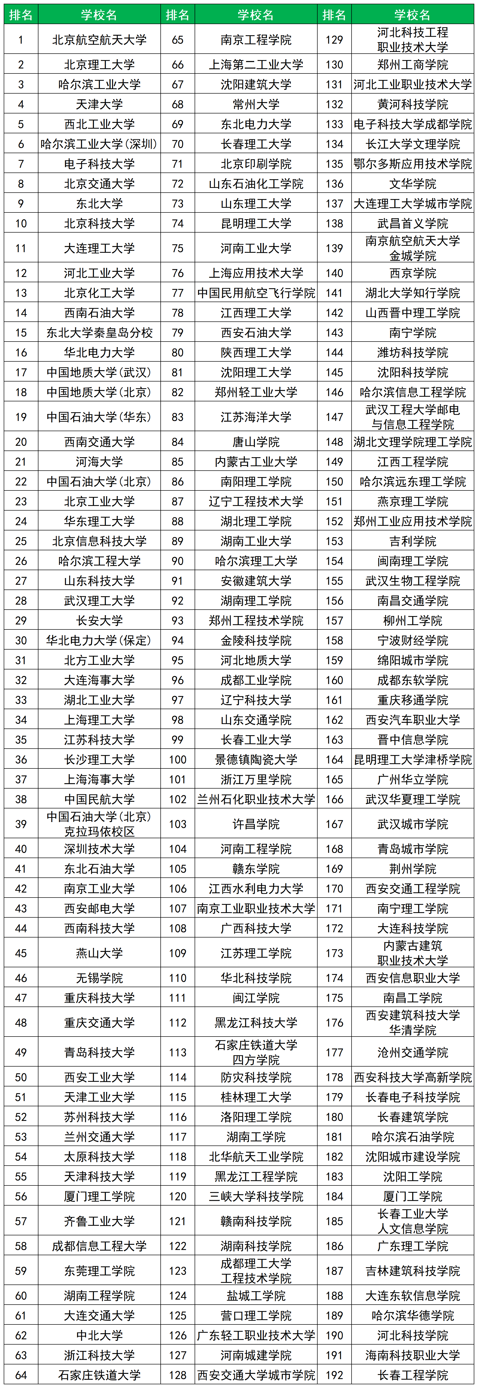 最难考的前五名院校分别为北京航空航天大学、北京理工大学、哈尔滨工业大学、天津大学、西北工业大学。