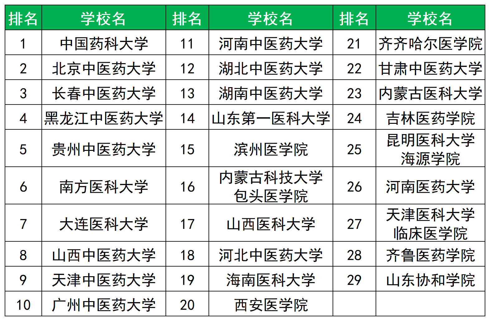 最难考的前五名院校分别为中国药科大学、北京中医药大学、长春中医药大学、黑龙江中医药大学、贵州中医药大学。