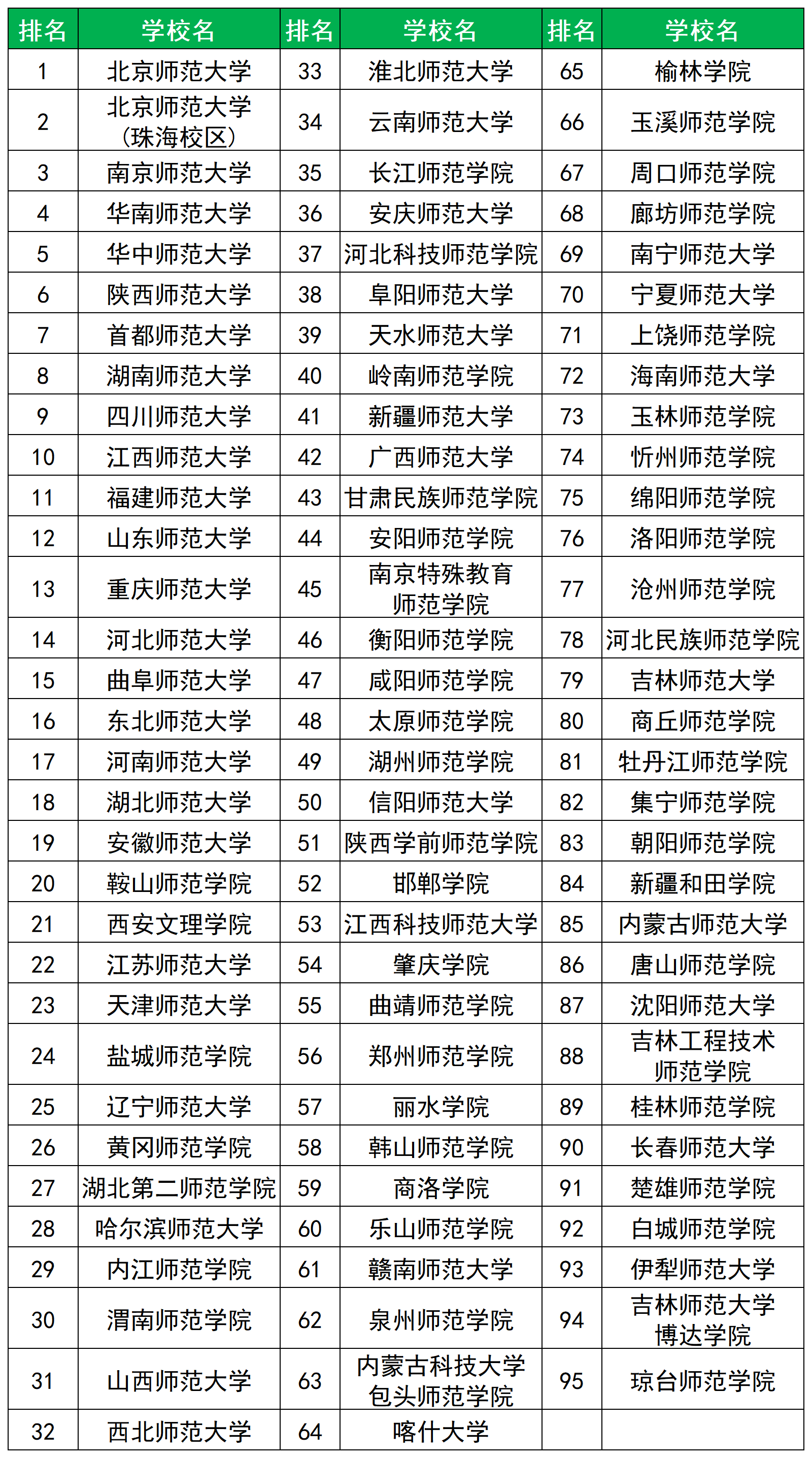 | 排名 | 学校名 | 排名 | 学校名 |