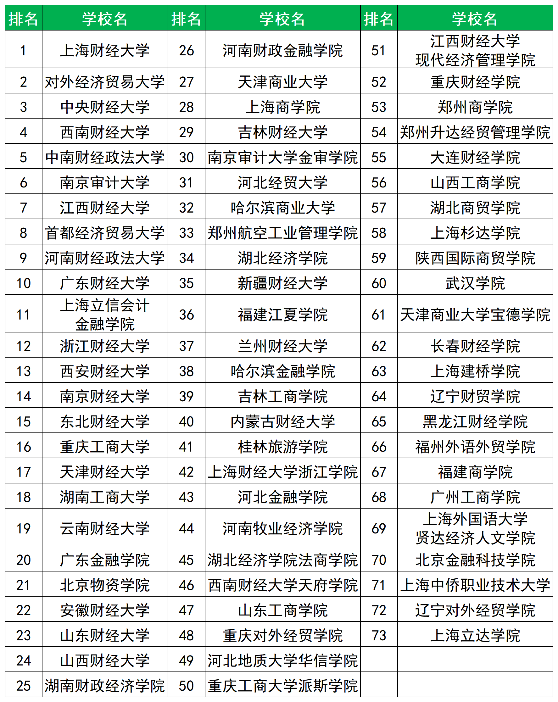 | 1 | 上海外国语大学 | 11 | 湖南女子学院 |