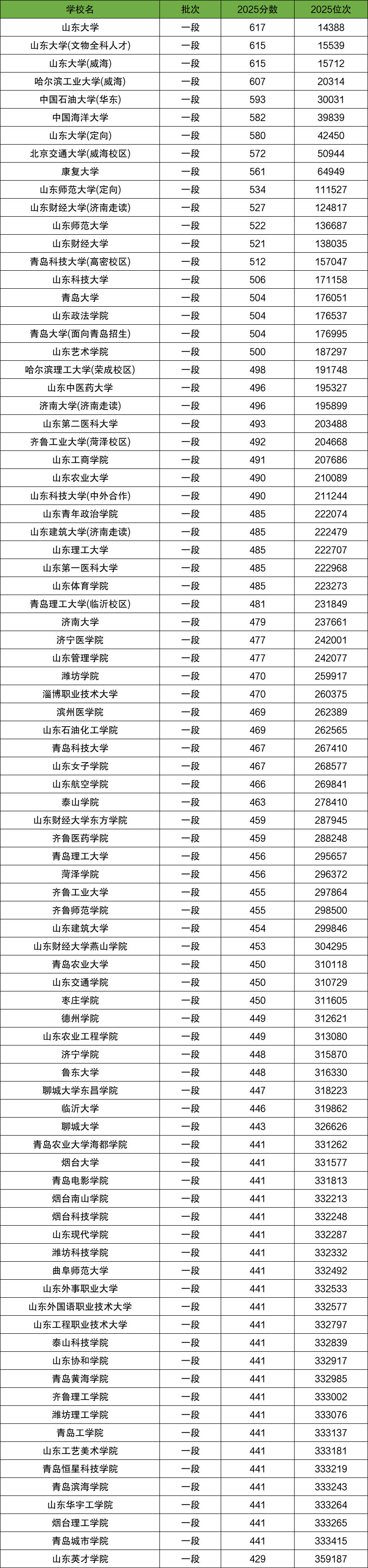 本文使用2025年山东省录取数据,整理的山东省内所有大学分数线。