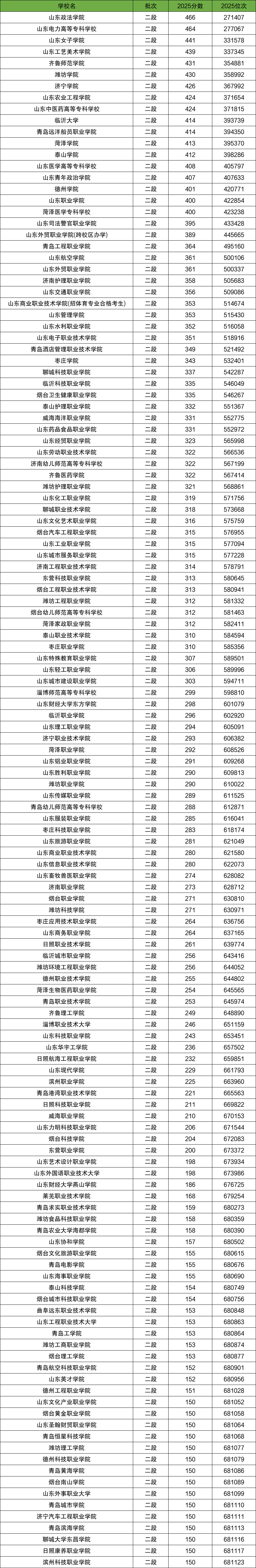 2025年山东各专科大学录取分数线最低是150分、最高是466分。