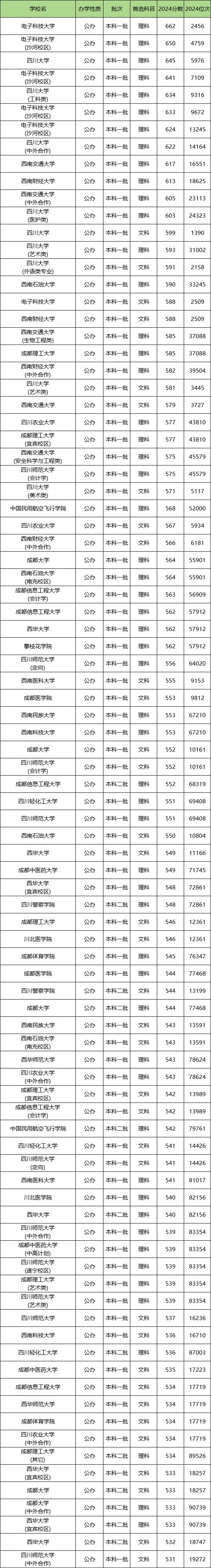 二、2024四川本科学校分数线