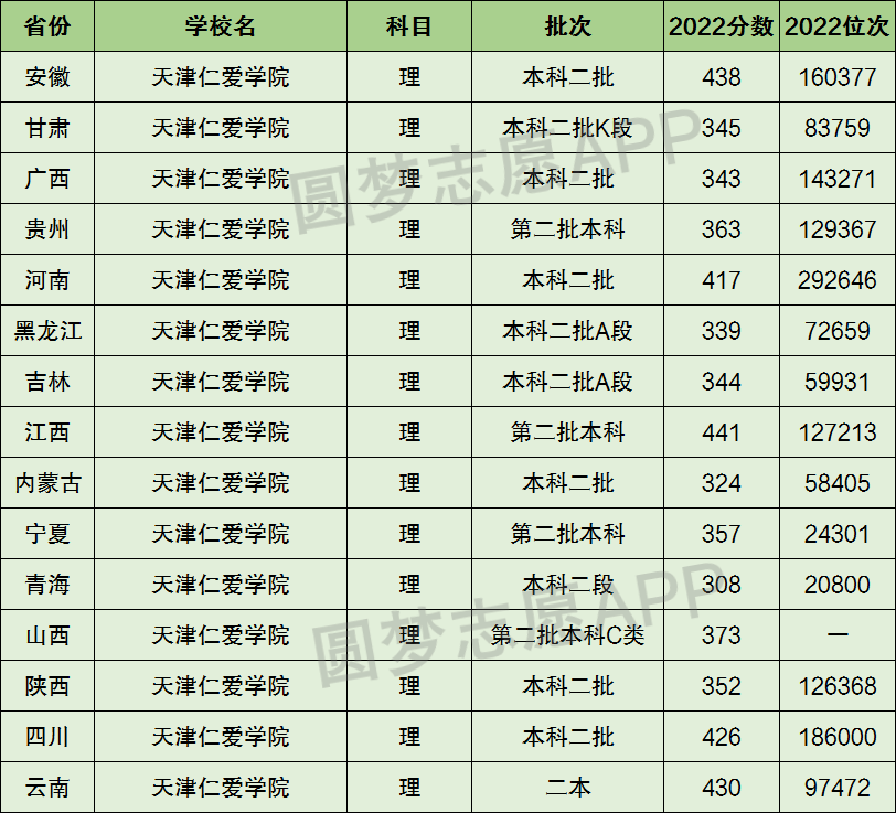 2、天津仁爱学院在全国普通高考省份的【理科】招录数据,包含招生批次等信息: