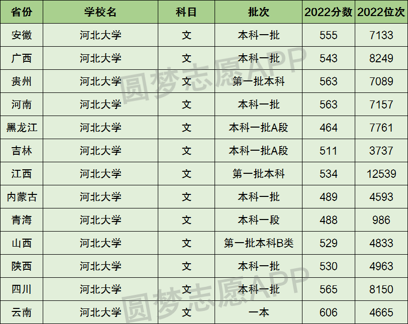 1、河北大学在全国普通高考省份的【文科】招录数据,包含招生批次等信息: