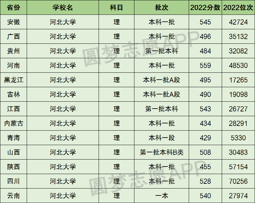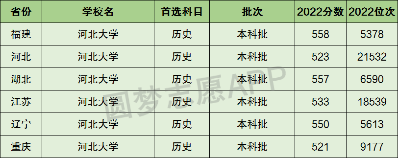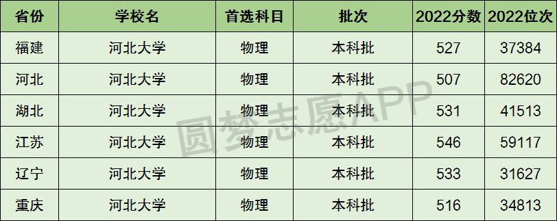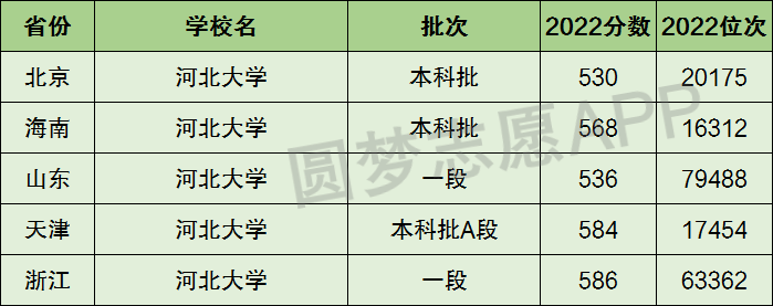 下面圆梦志愿将为大家展示河北大学2022年在全国各省市的最低分数线和位次,大家可以在了解河北大学在全国各省详细招生批次的同时,也顺便看看河北大学的招生录取分数线是多少!