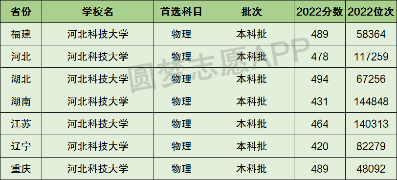5、河北科技大学在3+1+2新高考省份【首选物理】的招录数据,招生批次为本科批: