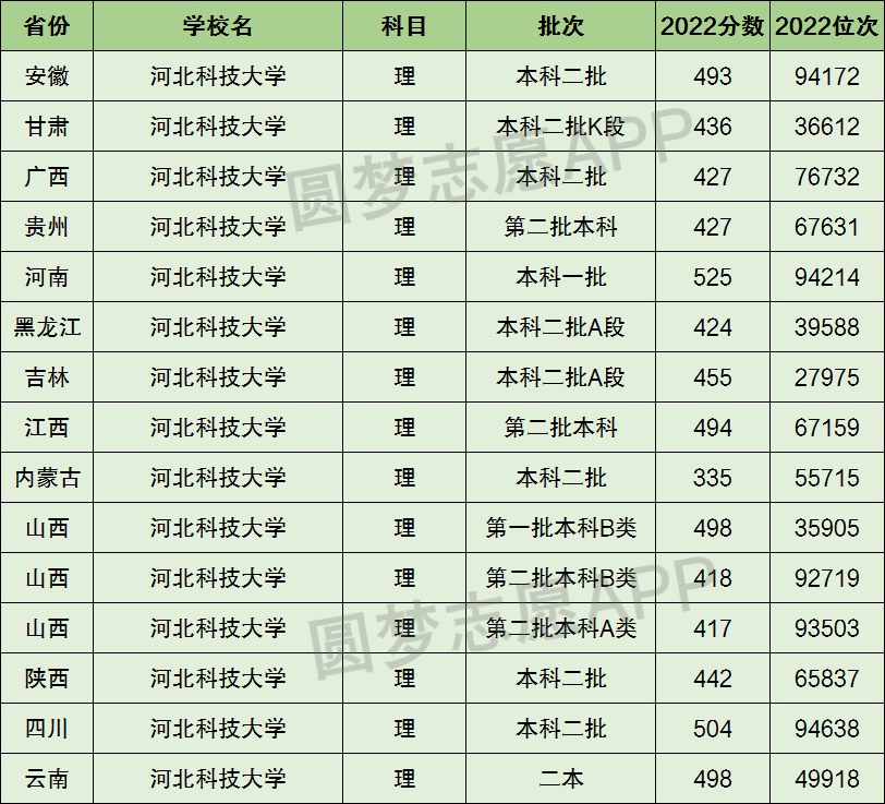 2、河北科技大学在全国普通高考省份的【理科】招录数据,包含招生批次等信息: