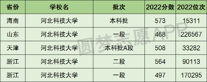 下面圆梦志愿将为大家展示河北科技大学2022年在全国各省市的最低分数线和位次,大家可以在了解河北科技大学在全国各省详细招生批次的同时,也顺便看看河北科技大学的招生录取分数线是多少!