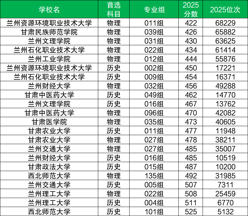 下面为大家列举2025年甘肃地方专项计划招生院校分数情况: