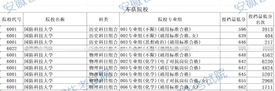 国防科技大学历史类:812组616分、813组616分、811组574分;